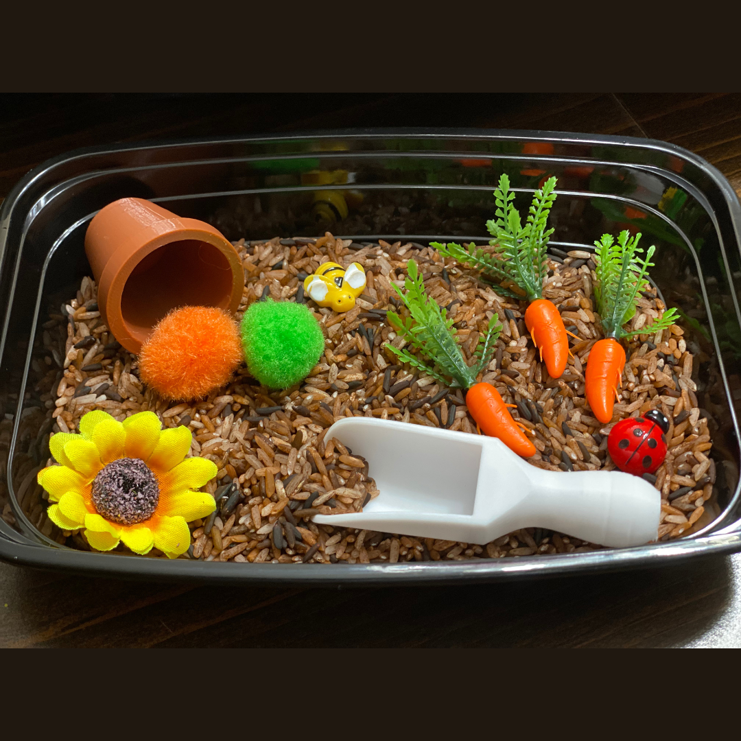 Transform your child's playtime into an enchanting adventure with our Carrot Patch themed Sensory Bin! This Montessori-inspired Carrot Patch Play Kit is designed to engage young minds in a world of sensory exploration and learning.