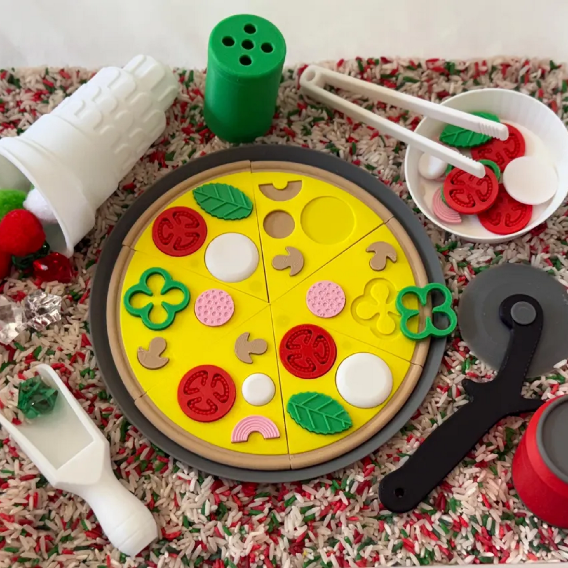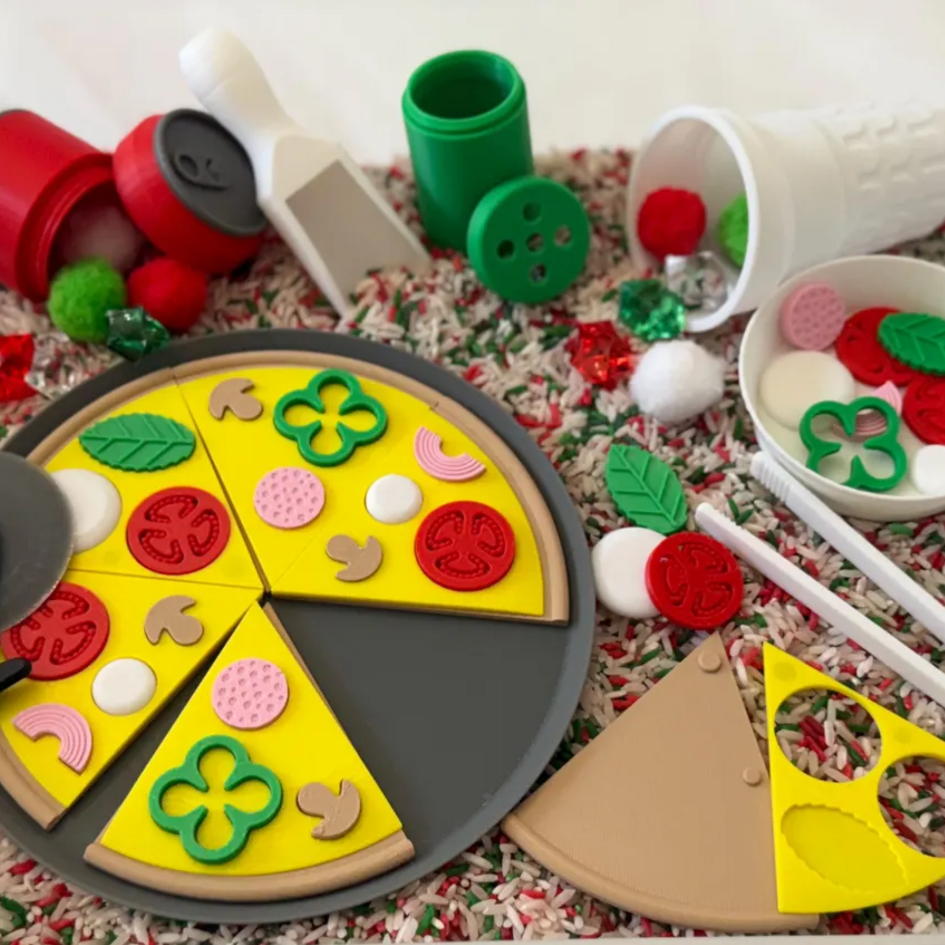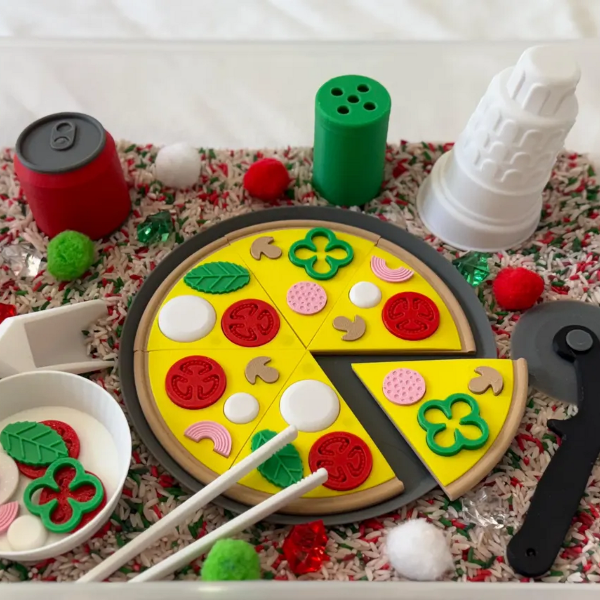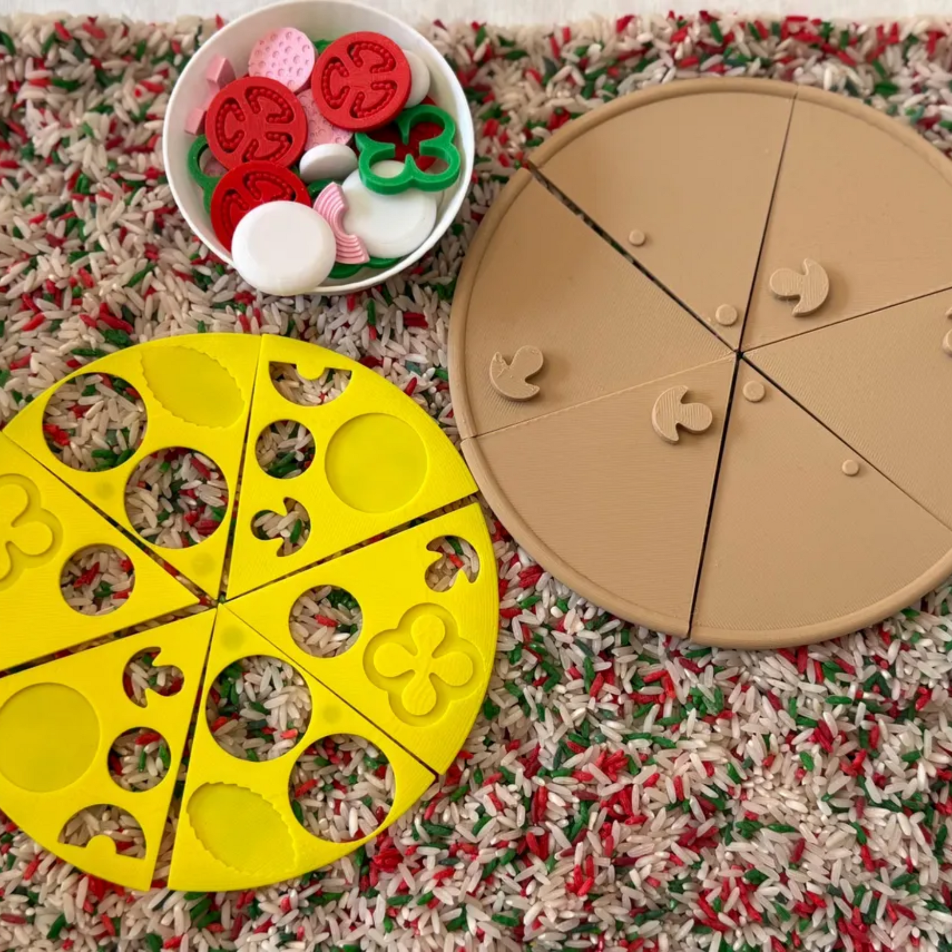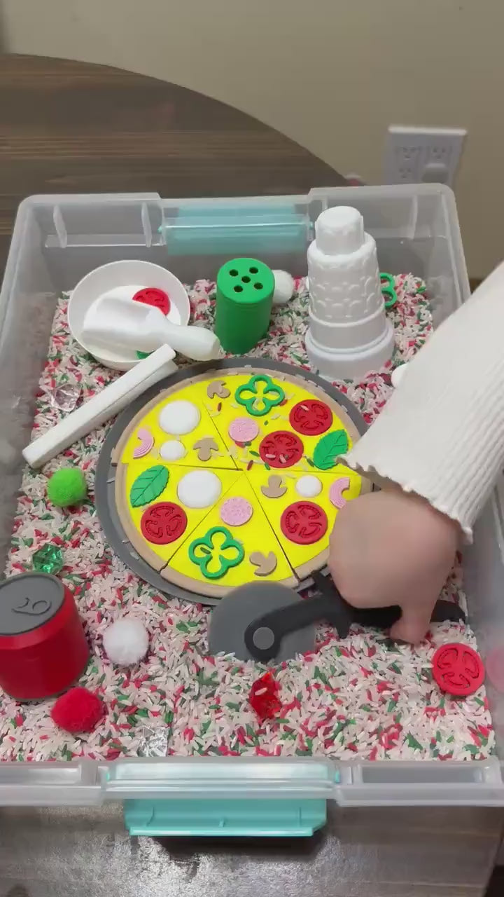 Turn playtime into a fun and educational sensory experience with our Montessori Pizza Puzzle Sensory Bin. Designed for interactive play, fine motor skill development, and imaginative fun, this pizza-themed sensory kit allows kids to create their own pretend pizza while engaging in hands-on learning.