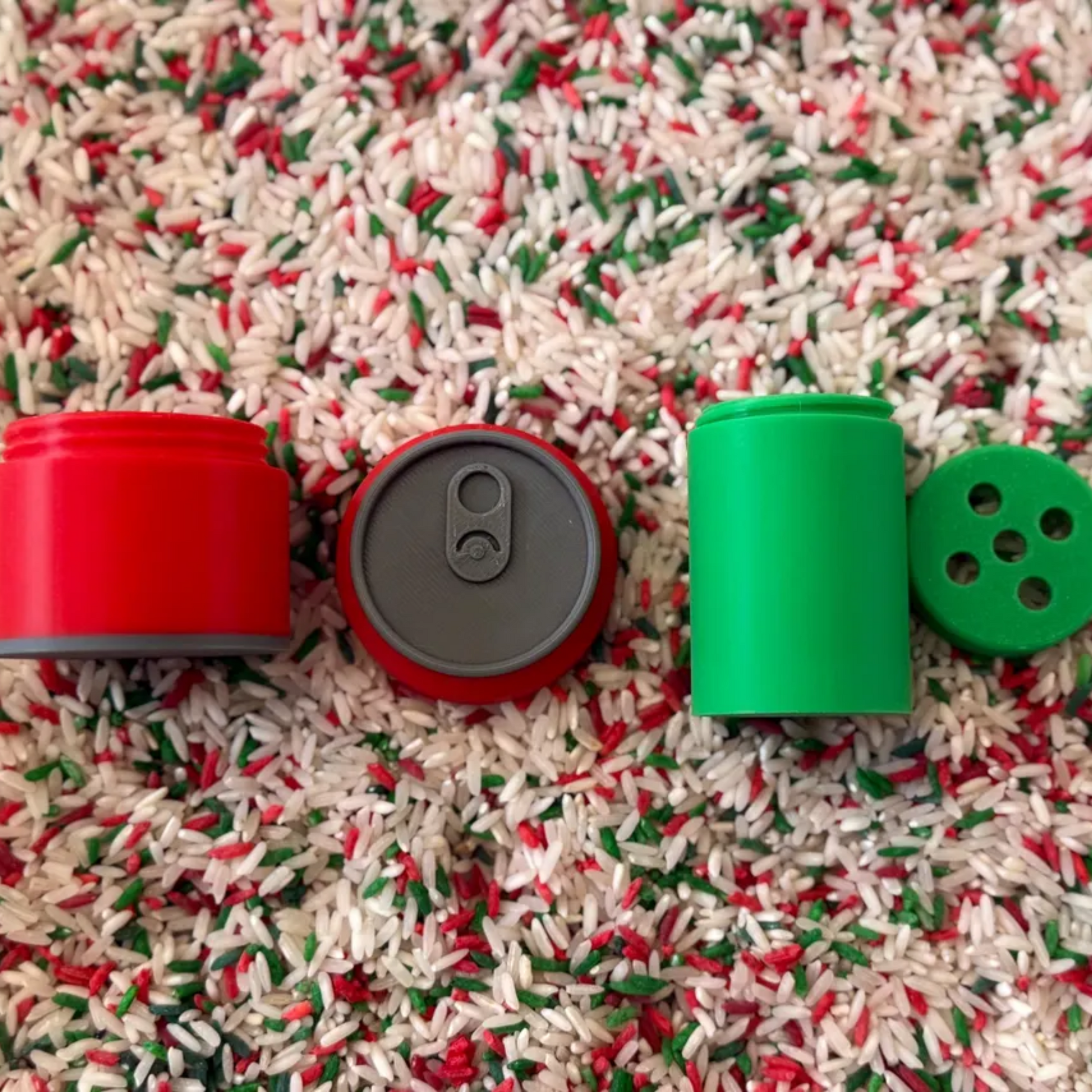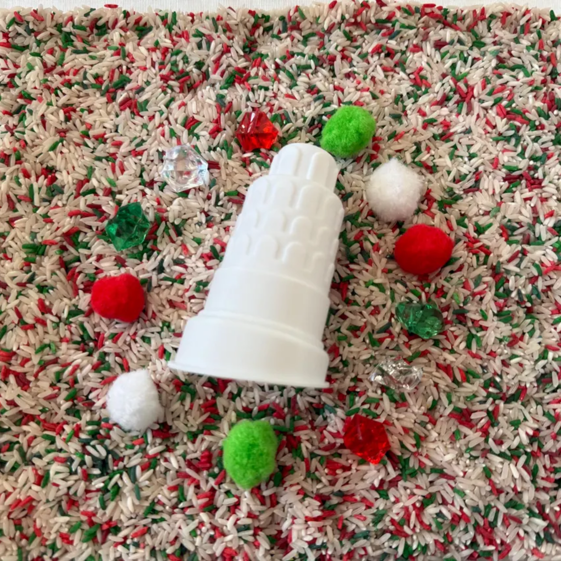 3 cups of colored sensory rice (1 extra cup with bin)
